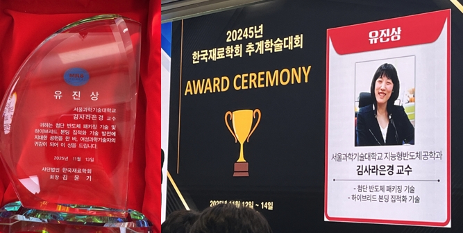 지능형반도체공학과 김사라은경 교수가 한국재료학회에서 ‘유진상’을 수상했다.