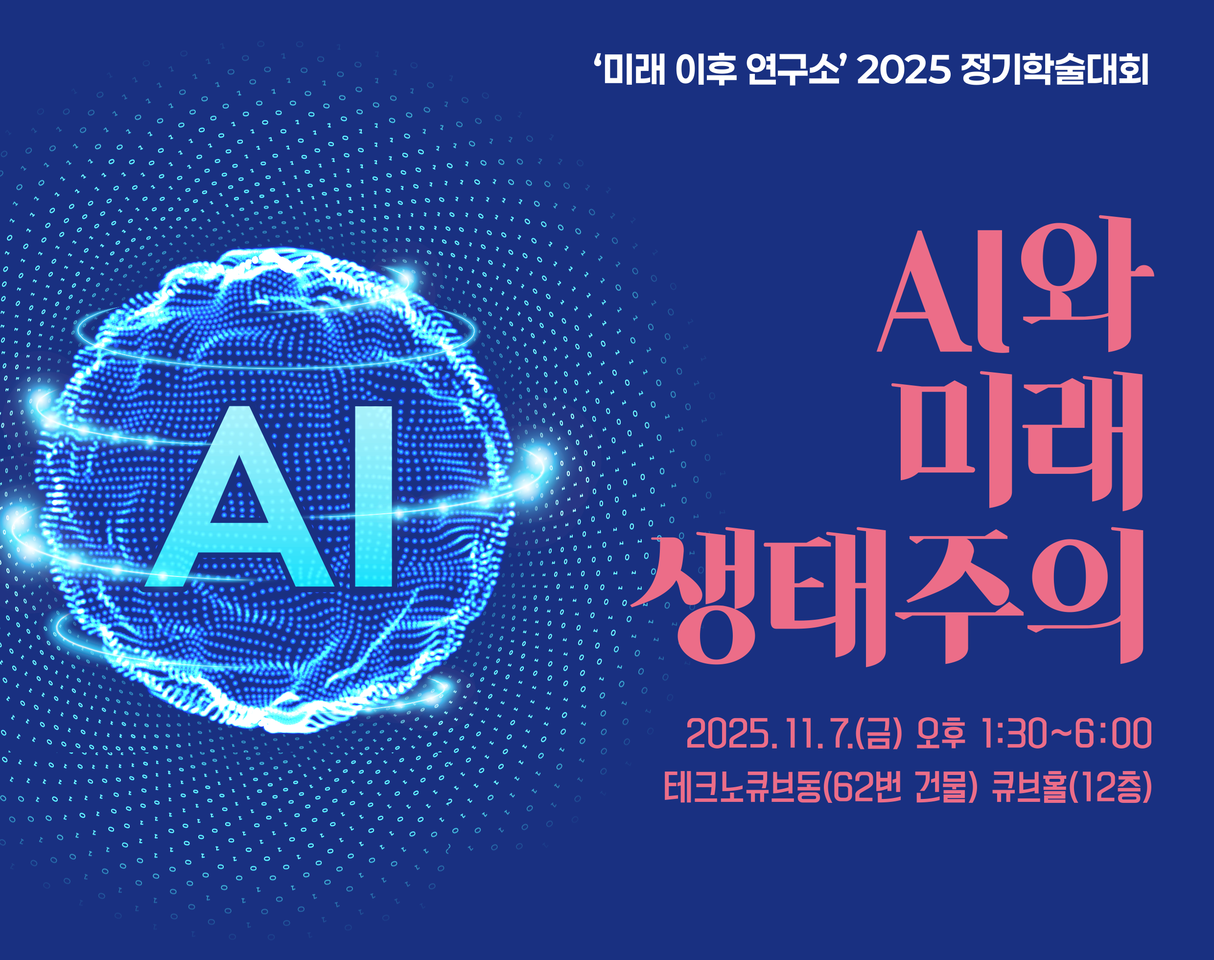 서울과학기술대학교 '미래 이후 연구소' 2025 정기학술대회 개최 주제: AI와 미래 생태주의일시: 2025. 11. 7.(금) 오후1:30~6:00장소: 테크노큐브(62번 건물) 12층 큐브홀대상: ...