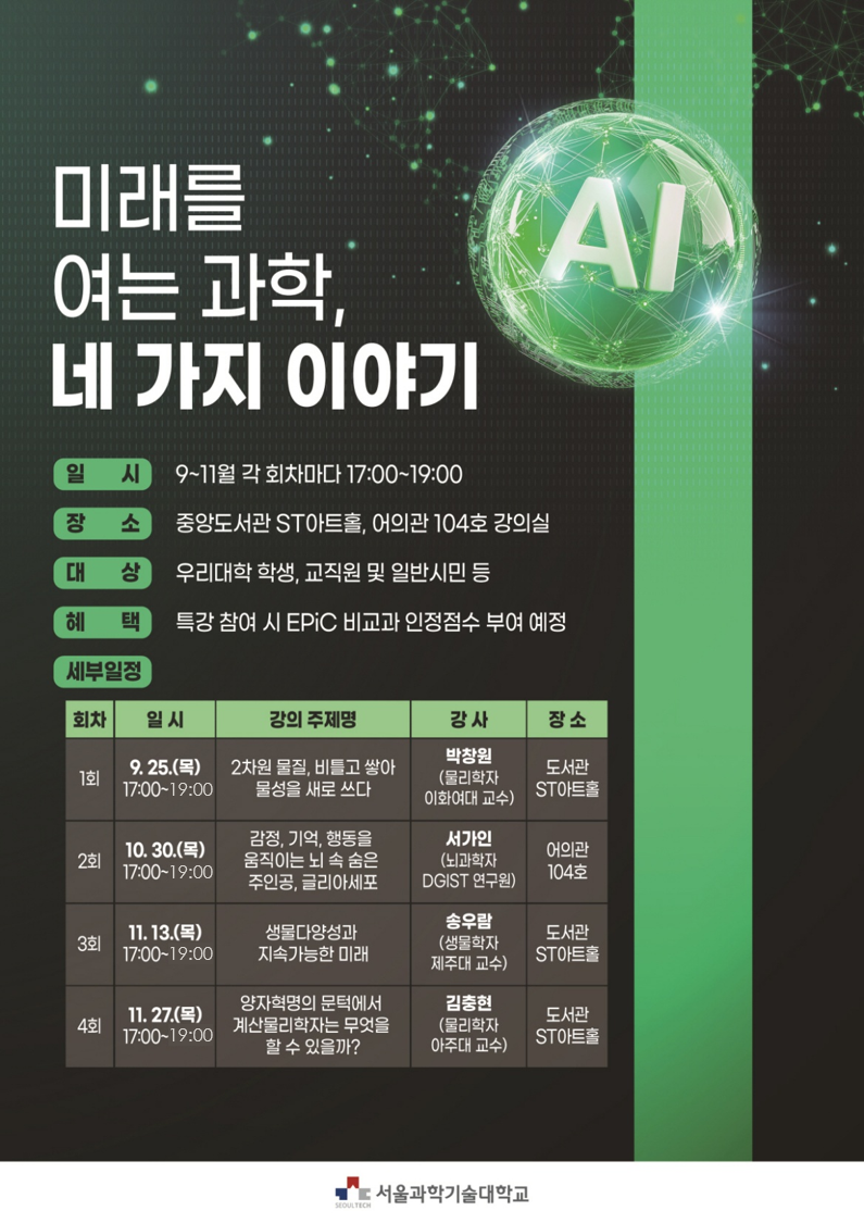 5. 대상: 학생, 교직원 및 지역주민 (※ 학부생 참석자에 대해 EPIC 비교과점수 70점 부여 예정)