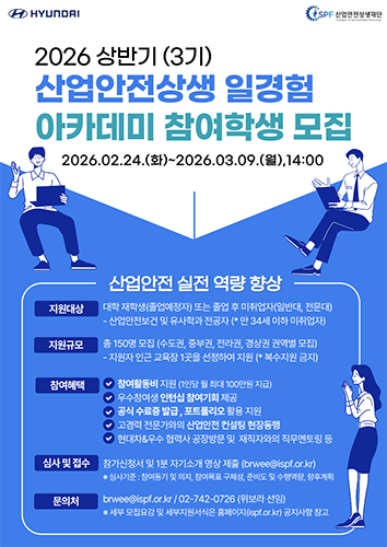 선발된 참여학생에게는 월 최대 100만 원의 학습활동비가 지원되며, 고용노동부·산업안전상생재단 공동 수료증이 발급된다. 우수 참여자에게는 추가 인턴십 기회가 제공되어 취업 경쟁력 강화에도 실질적인 도움이 될 전망이다.