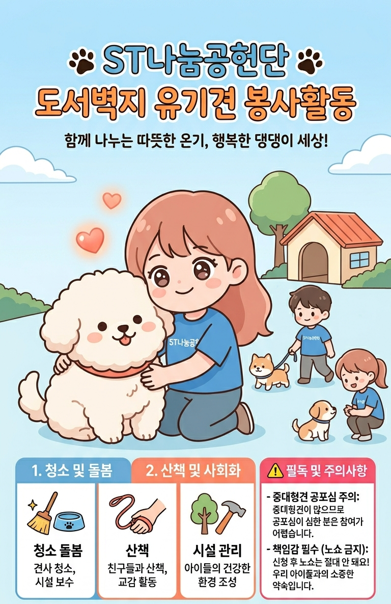 [ST나눔공헌단] 2026학년도 농·어촌 도서벽지 프로그램 「유기견 봉사활동」신청 안내 [선착순 마감]