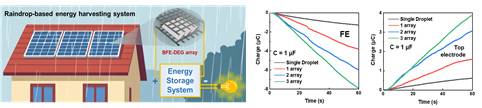 특히, 본 시스템은 Faradaic 반응 기반 전하 생성과 구조적 설계를 결합함으로써 소자 면적 증가에 따라 출력이 선형적으로 향상되는 특성을 확보하였으며, 이를 통해 대면적 확장이 가능한 고출력 직류형 액적 발전 플랫폼으로서의 가능성을 제시하였다.