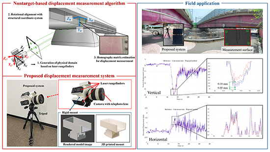 건설시스템공학과 김현준 교수 연구팀은 디지털 카메라와 4개의 레이저 거리계를 결합해, 별도의 측정판 설치 없이도 임의의 위치와 각도에서 구조물의 동적 변위를 고정밀로 계측할 수 있는 시스템을 개발했다. 해당 연구 성과는 기계공학 분야 세계적 권위 학술지인 Mechanical Systems and Signal Processing(JCR 상위 3%) 1월 호에 게재되었으며, 건설시스템공학과 구조물유지관리 연구실 소속 안태준 석사과정 학생이 제1저자, 김현준 교수가 교신저자로 참여했다.