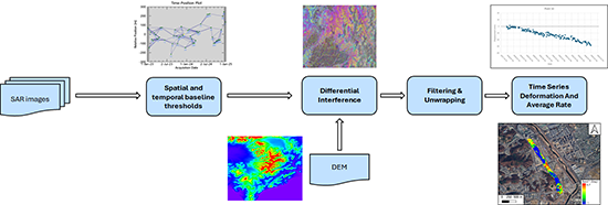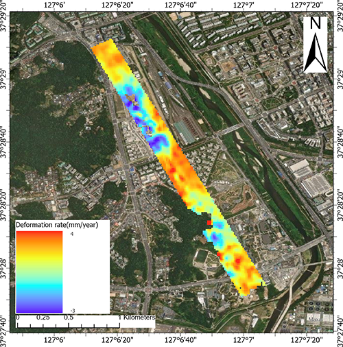 기존 터널 주변 지반침하 평가는 정밀수준측량, GNSS, 현장 계측 등을 통해 수행되지만, 광역 범위의 연속 관측과 수년 단위 장기 변화 추적에는 비용·시간·공간적 제약이 크다. 반면 위성 기반 InSAR는 반복 관측을 통해 수 km 이상 범위에서 mm급 변위를 장기적으로 파악할 수 있어, 공사 이후에도 누적되는 장기 침하를 체계적으로 평가하는 데 유리하다.