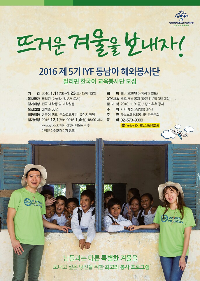 필리핀 한국어 교육봉사단 모집 (제 5기 IYF 동남아 해외봉사단)