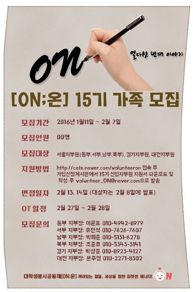 -> 지원서 파일의 제목은 (ON-15기-희망지부) 성명-학교명 으로 반드시 통일해주세요