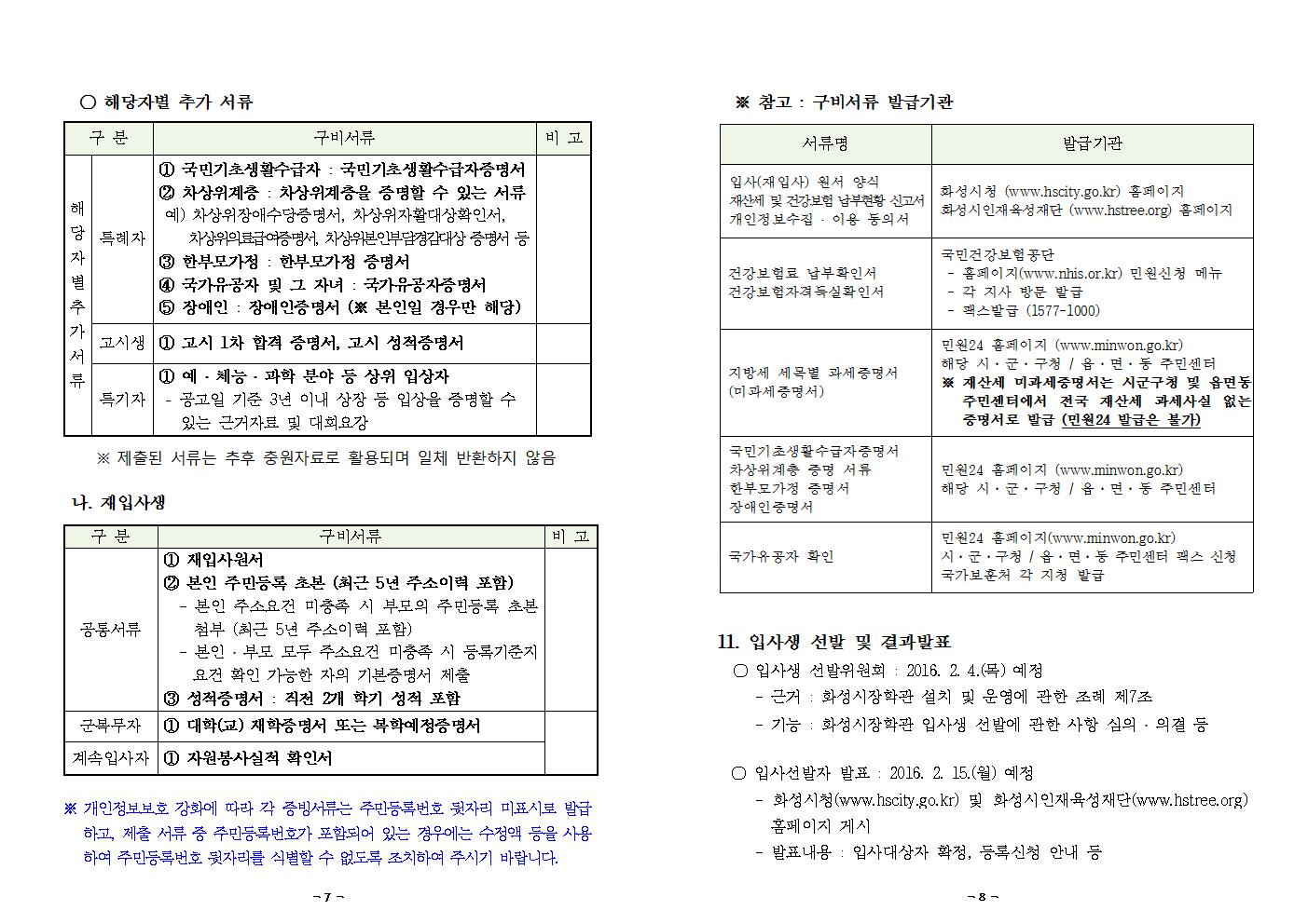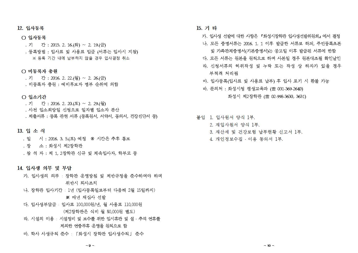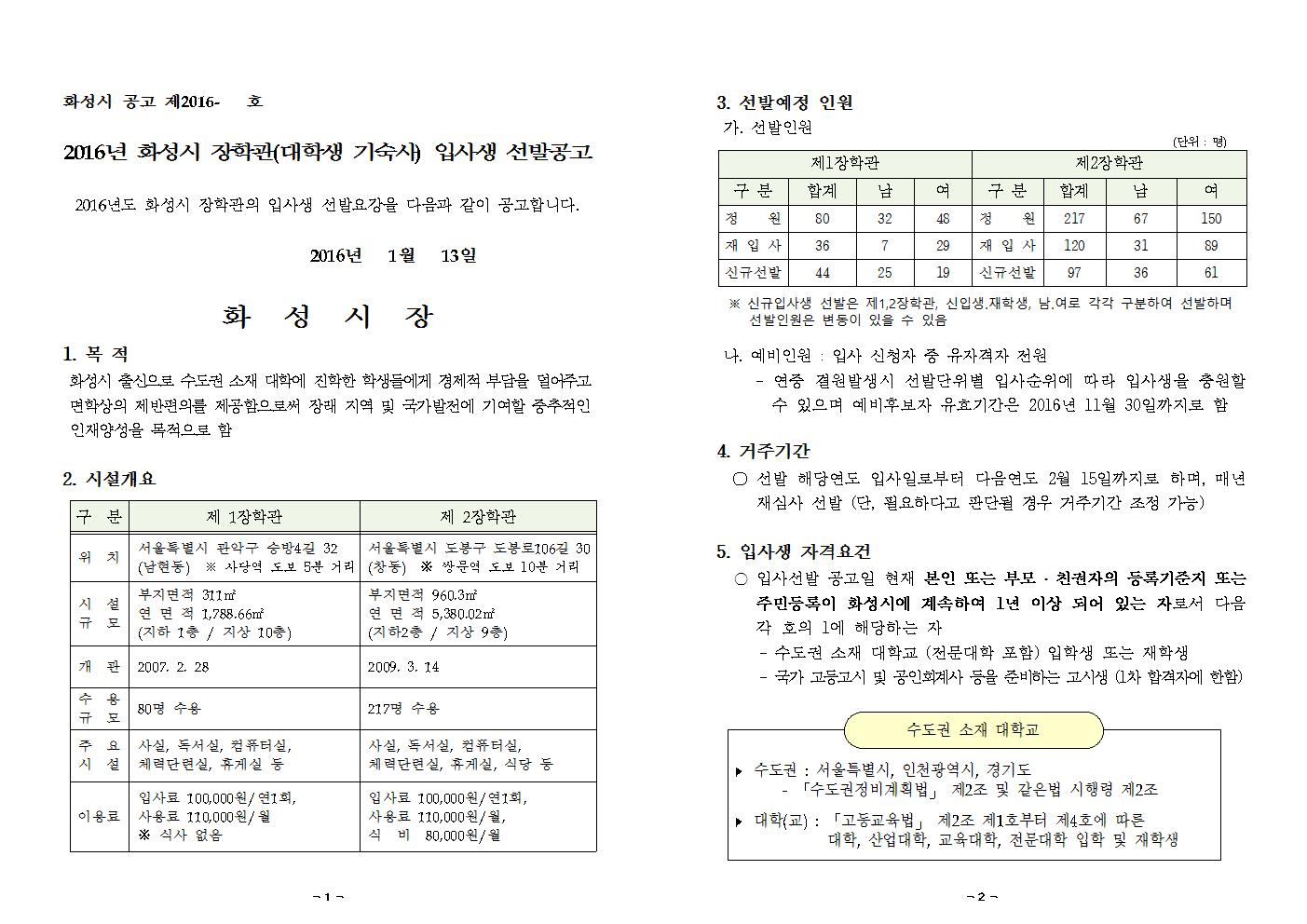 [화성시] 2016학년도 화성시장학관(지역장학숙) 신규 모집공고