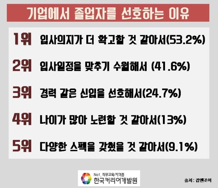 기업에서는 졸업예정자보다는 졸업자를 더 선호한다?