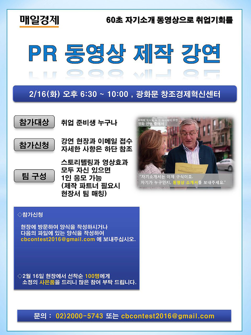 [매일경제] '60초 자기소개 동영상' 콘테스트 개최 (~2.19.)
