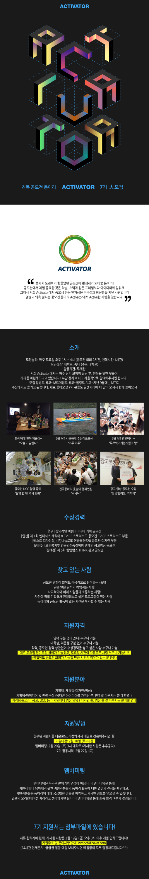 교외 동아리 공모전 동아리 [액티베이터] 에서 동아리원을 모집합니다.