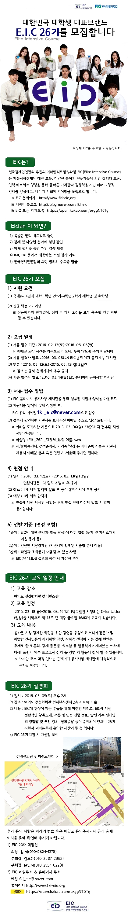 <문의사항은 포스터의 번호로 연락주시거나, 페이스북 EIC페이지에 문의하시면 감사하겠습니다>