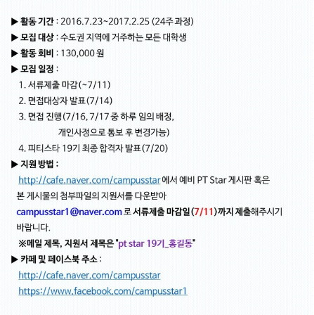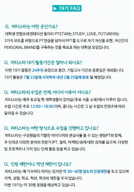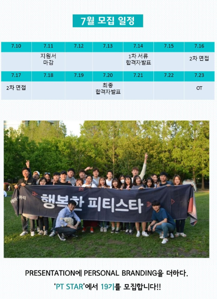 대학생 연합 프레젠테이션 동아리 PT STAR에서 ★19기★를 모집합니다 (~7.11)