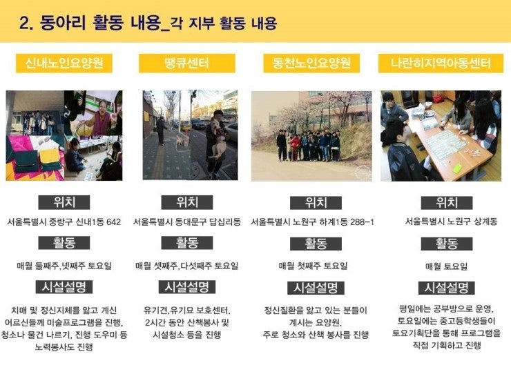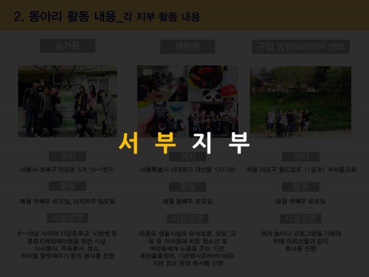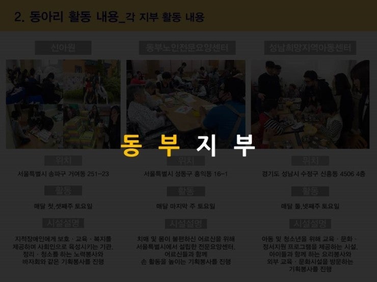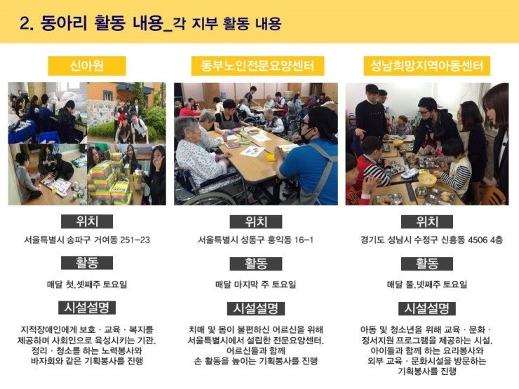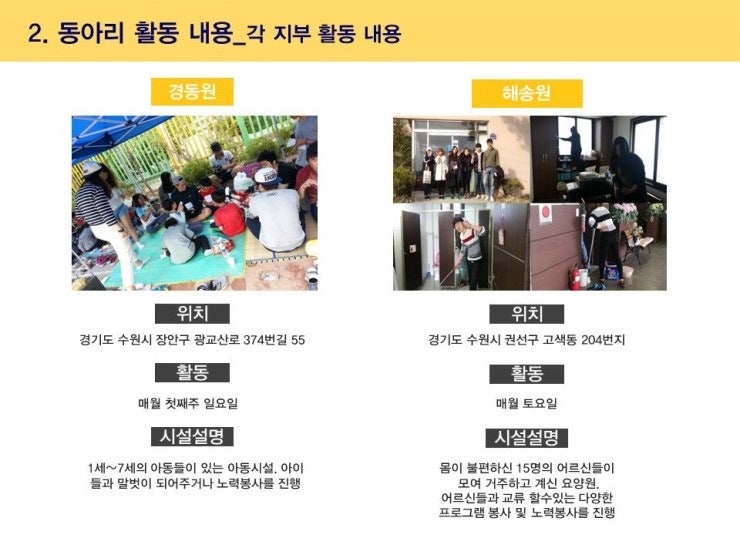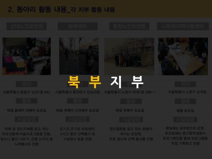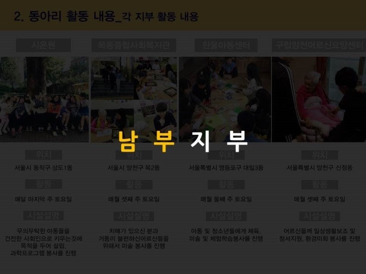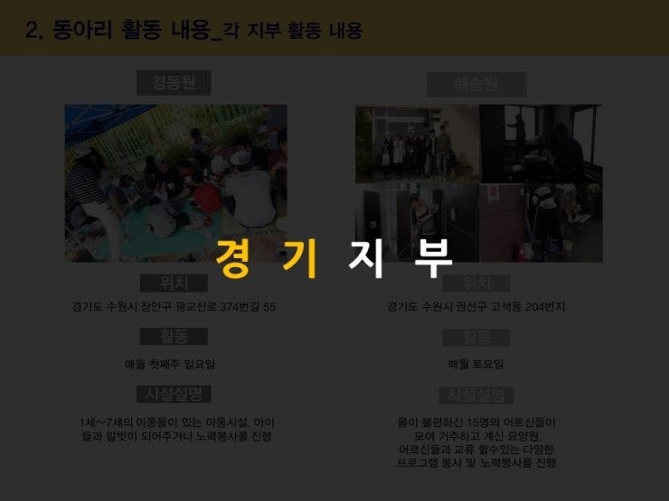 각 지부별로 봉사기관과 활동내용을 지부소개자료에서 확인해주세요.