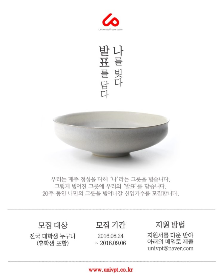 3. 지원방법 : 지원기간 내에 UnivPT 카페에서 지원서를 다운받아서 univpt@naver.com로 제출