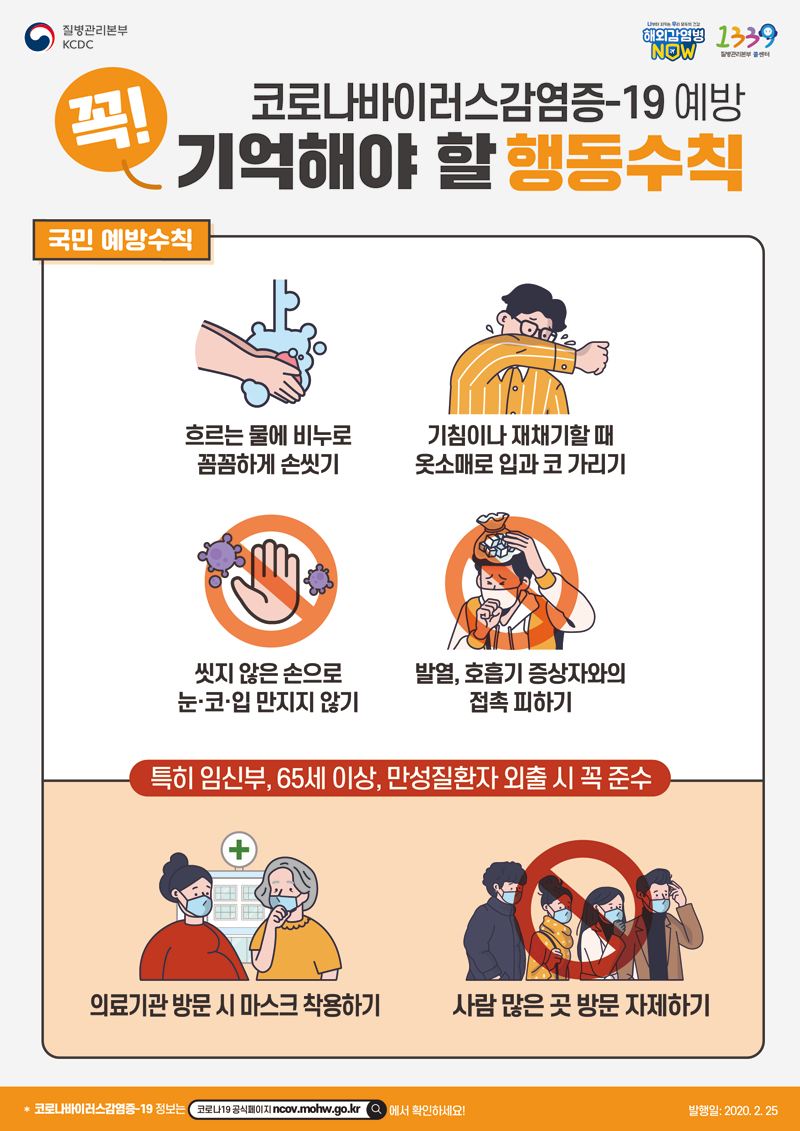 (감염병위기단계 심각)신종코로나바이러스 감염증 예방행동수칙(Novel Coronavirus infection Pervention dos and don'ts)