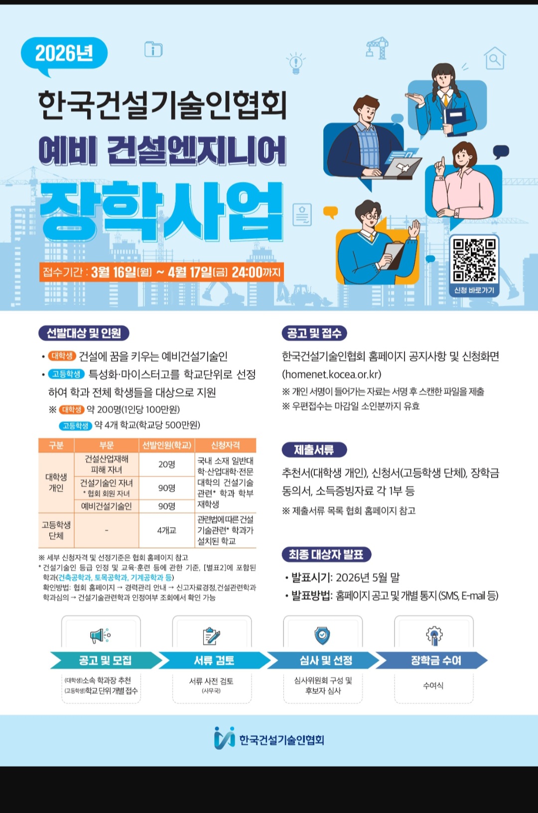 한국건설기술인협회 예비 건설엔지니어 장학생 선발 안내