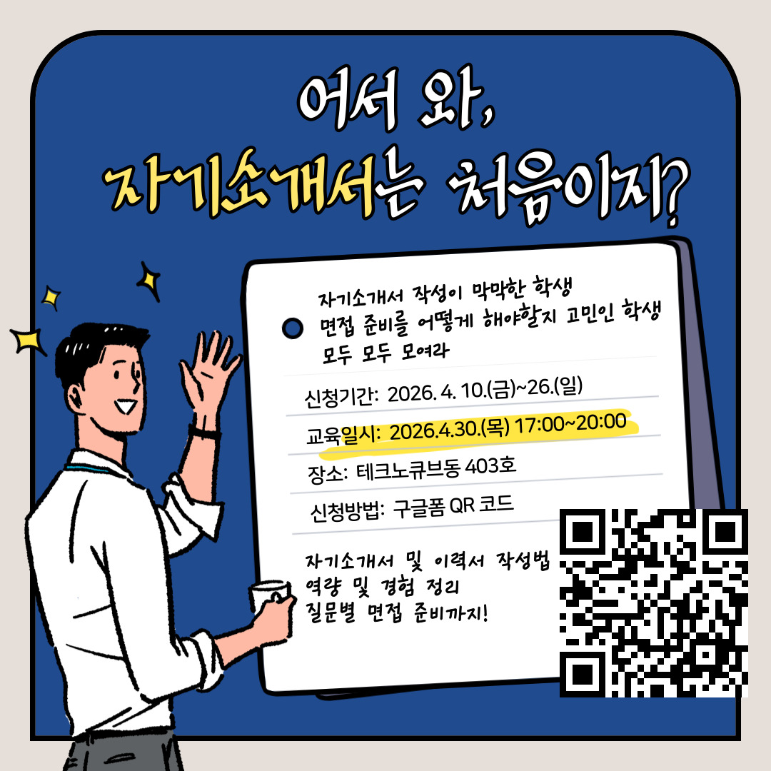 | 작성자 | 현장실습지원센터 | 조회수 | 347 | 날짜 | 2026-04-10 |