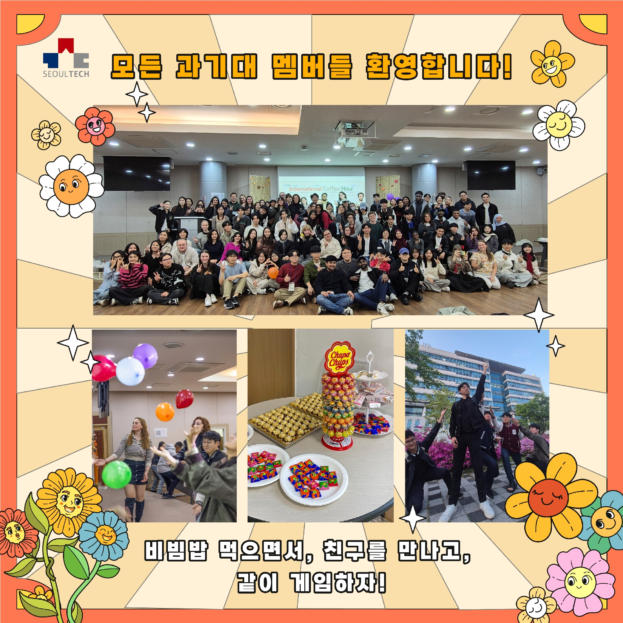 비빔밥의 다양한 재료가 한데 섞여 더 맛있어지듯, 이번 행사에서는 서로 다른 국적의 학생들이 만나 함께 섞이고 어울리며 새로운 친구를 만드는 시간을 준비했어요!