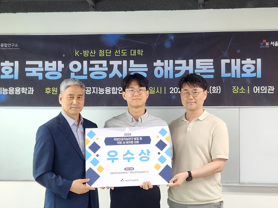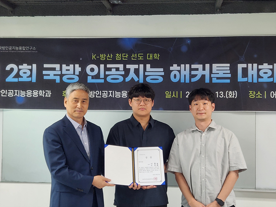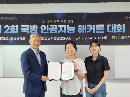 금번 해커톤 대회에서는 이찬호(석사과정, 메타빌드)과 이일균(공군SW연구소)가 발표한 ‘WGAN-GP(Wasserstein GAN-Gradient Penalty) 기반 항공시뮬레이터의 시각적 품질 향상을 위한 이미지 색상 보정 연구’가 최우수상, 최한선(석사과정, 포멀웍스)과 남예린(학부연구원)이 발표한 ‘당신의 군사전문가 sLM기반 맞춤형 군사정보규레이션 시스템 개발’와 문지원(석사과정, 한화시스템)이 발표한 ‘DLKD-Net 야외 이미지 안개 제거를 위한 효율적인 모델’이 우수상을 받았다.