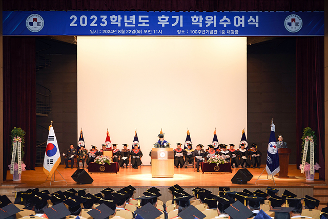 지난 8월 22일(목) 11시, 100주년 기념관 대강당에서 '2023학년도 후기 학위수여식'이 열려 박사 57명, 석사 258명, 학사 624명이 졸업했다.