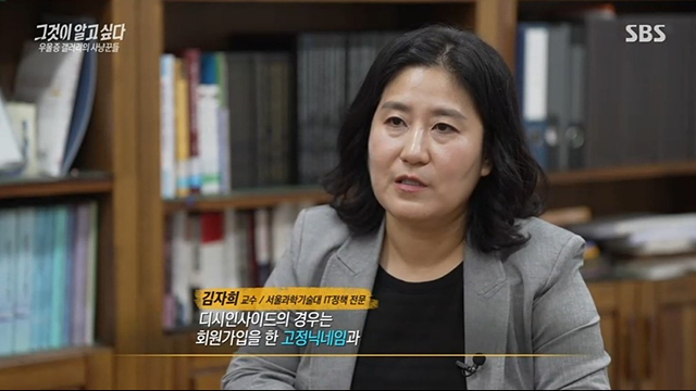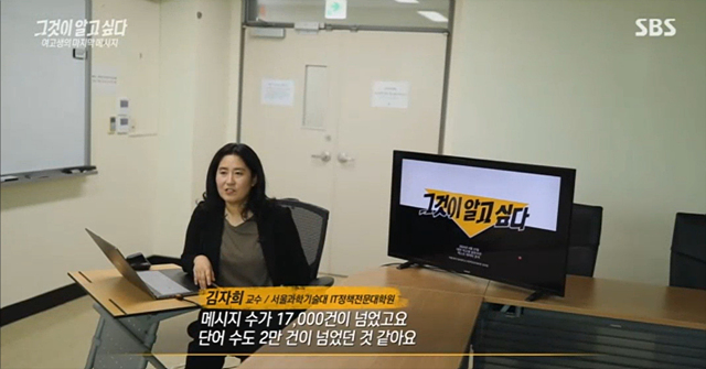 우리 대학 IT정책전문대학원 산업정보시스템 전공의 김자희 교수가 지난 8월 31일(토)에 방송된 SBS의 시사 프로ㄷ그램 <그것이 알고싶다> 1,410회 "히데하우스의 위험한 초대-우울증 갤러리의 사냥꾼들"편에 출연하여 디시인사이드 우울증갤러리의 텍스트 데이터 분석 결과에 대해 전문가 인터뷰를 진행하였다.