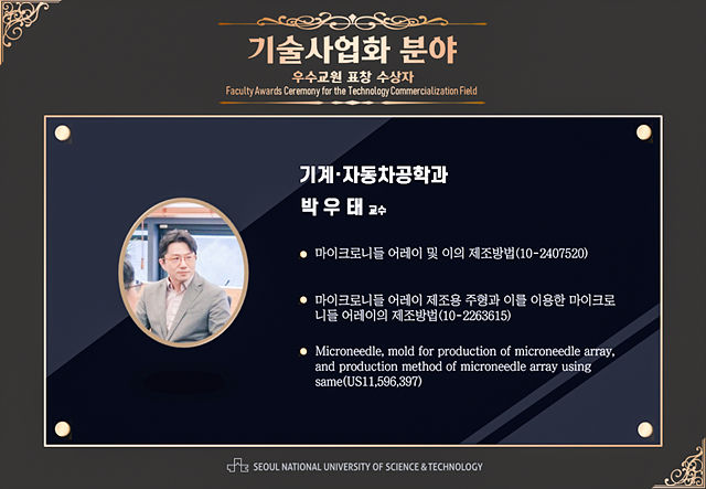특히, 산학협력단 기술사업화본부에서 추천한 기술사업화 분야 우수 교원에 기계·자동차공학과 박우태 교수가 선정되었다. 박우태 교수는 우리 대학의 중·대형 기술이전 성과 창출 기준(1억원 이상)을 충족, 그 우수성을 인정받게 된 것이다.