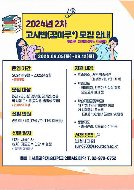 인문사회대학이 2024년 2차 고시반(꿈마루)를 모집한다.