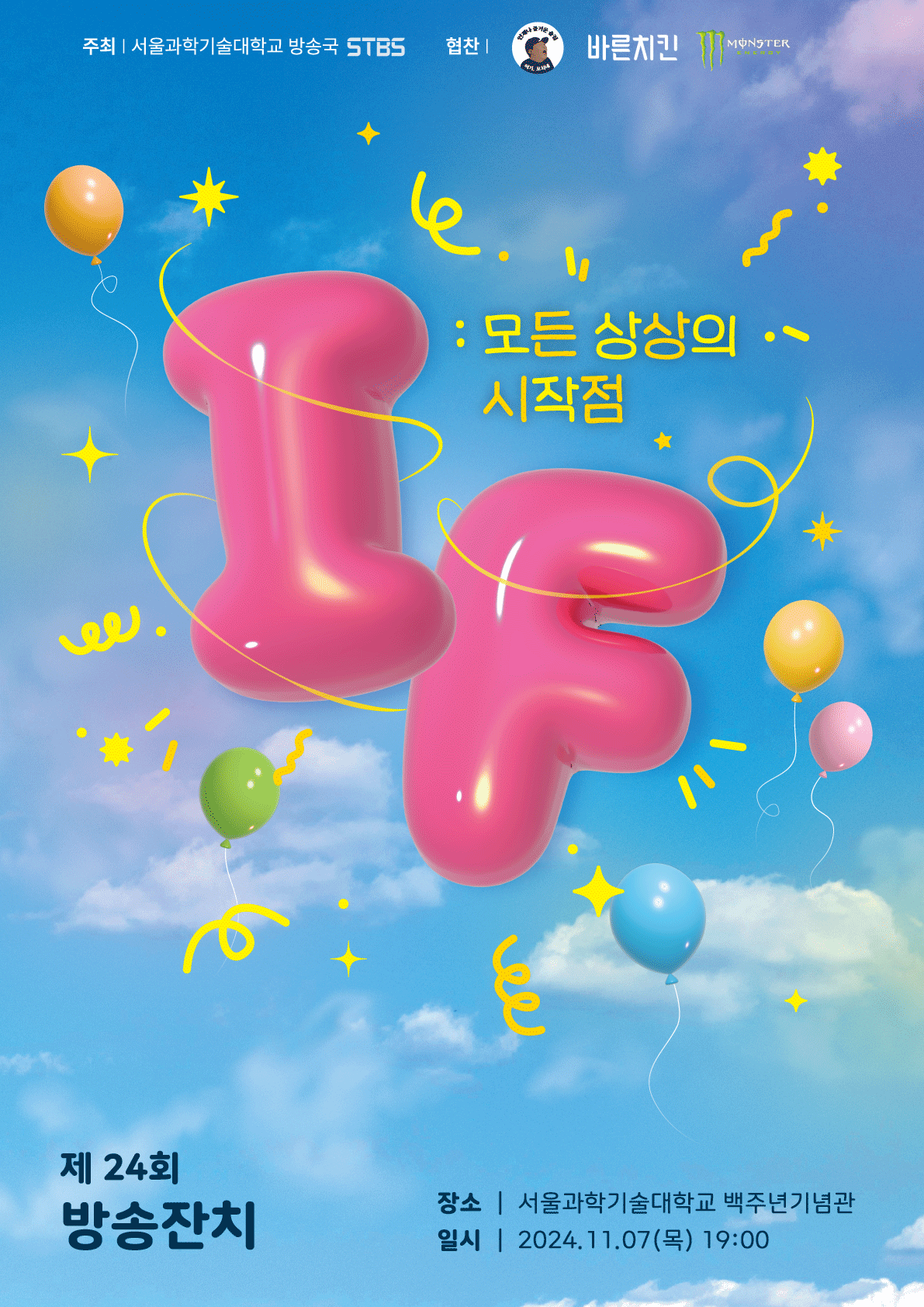 우리 대학 방송국 STBS에서 11월 7일 목요일 저녁 7시, 100주년 기념관 대강당에서 [IF : 모든 상상의 시작점]을 주제로 방송제를 개최한다. 올해 제 24회를 맞이하는 방송제는 우리 대학 학생들에게 대학문화 창달 및 교양 증진의 기회를 제공하고, 방송국 학생들의 영상 제작을 통한 역량 개발을 위해 개최된다. “만약”이라는 주제로 다큐멘터리, 예능, 드라마, 오디오 드라마 등 다양한 장르의 독창적인 프로그램을 제작해서 상영한다.