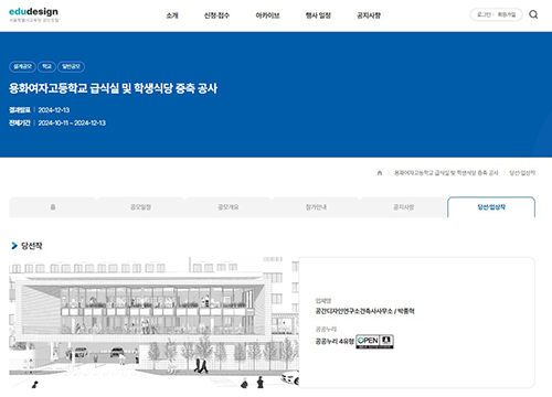 서울과학기술대학교 건축공학전공 박종혁 교수가 지난 12월에 서울시교육청에서 주관한 ‘용화여고 급식실 및 학생식당’ 설계 공모에서 1등에 당선됐다.