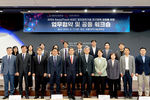 서울과학기술대학교(총장 김동환, 이하 “서울과기대”)와 한국과학기술연구원(원장 오상록, 이하 “KIST”)은 지난 4월 17일(금) 서울 노원구에 위치한 서울과기대 테크노큐브동에서 연구협력 및 과학기술 인재양성을 위한 업무협약(MOU)을 체결했다고 밝혔다.