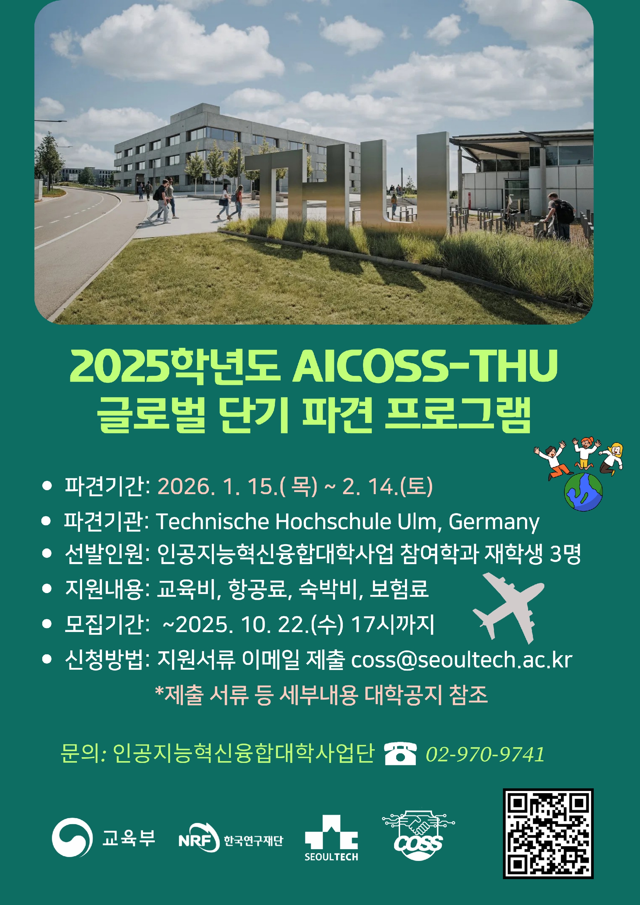 제목 | 2025학년도 AICOSS-THU(독일) 글로벌 단기 학생 파견 프로그램 참가자 선발 안내 | ||||||||||||||||||