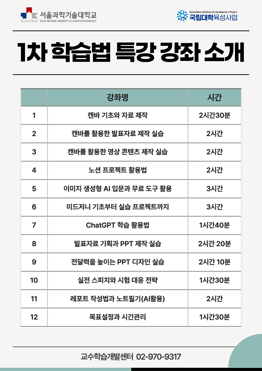 교수학습개발센터에서 2026학년도 1차 학습법 특강을 운영합니다. 많은 참여 바랍니다:)