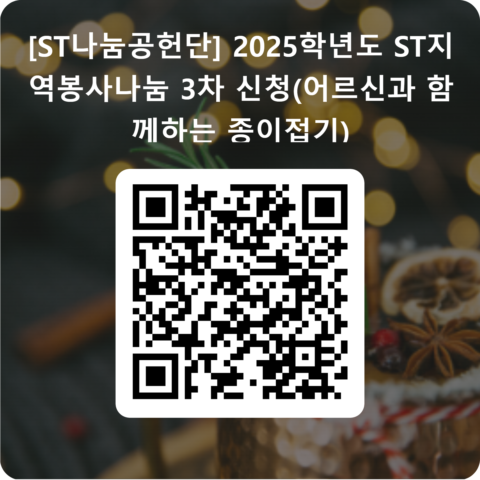 2025학년도 ST지역봉사·나눔 3차 봉사활동 「어르신과 함께하는 종이접기」 참여자를 아래와 같이 추가 모집하오니