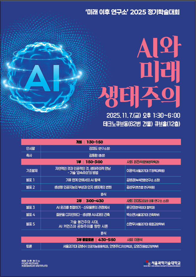 서울과학기술대학교 '미래 이후 연구소' 2025 정기학술대회 "AI와 미래 생태주의" 개최 안내